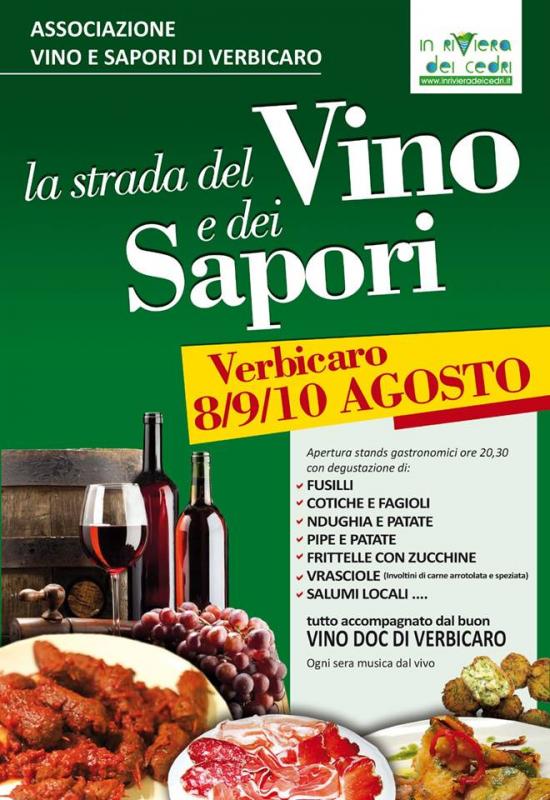A Verbicaro in Provincia di Cosenza si terrà la strada del vino e dei sapori dal 8 al 10 Agosto 2018 festa è un appuntamento fisso diventato negli anni una delle manifestazioni piu' apprezzate della