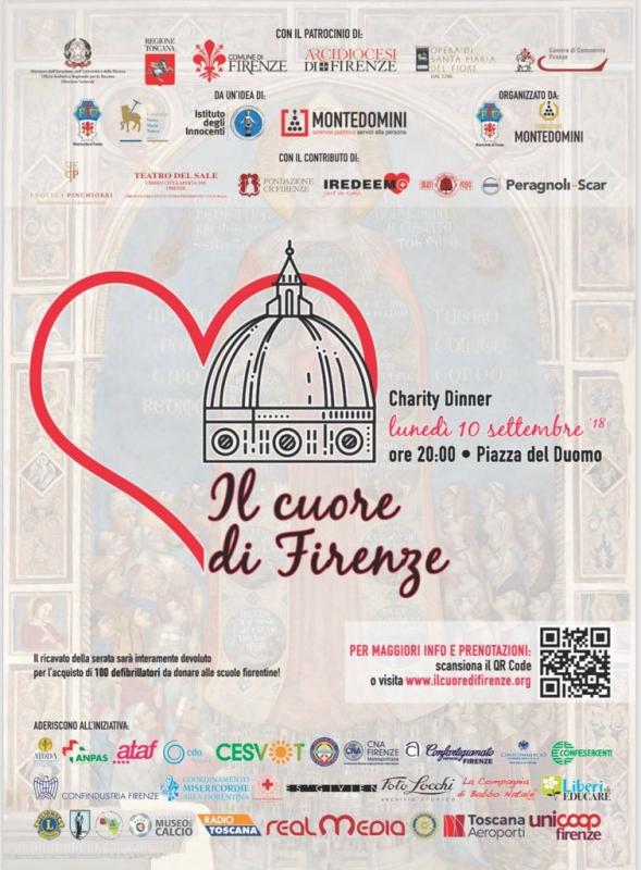 Mille persone a cena in piazza del Duomo per acquistare 100 defibrillatori da donare alle scuole fiorentine e promuovere corsi di formazione per abilitarne all’utilizzo. Un’ idea ambiziosa realizzata grazie alla straordinaria collaborazione delle Istituzioni Caritatevoli fiorentine e con l’appoggio dei principali enti e di realtà commerciali locali. I defibrillatori sono forniti dalla Iredeem Spa. Il progetto unisce i fini sociali a quelli educativi, salvando vite umane e al contempo trasferendo ai più giovani quel senso di solidarietà e collaborazione che è alla base della convivenza civile.