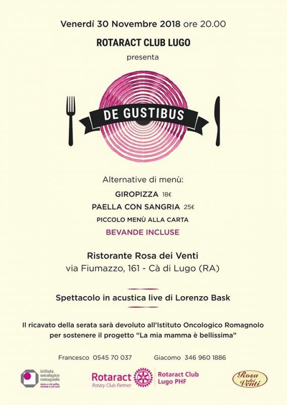 Il Rotaract Club di Lugo organizza “De Gustibus”, una cena solidale il cui ricavato sarà devoluto all’Istituto oncologico romagnolo per sostenere il progetto “La mia mamma è bellissima”.