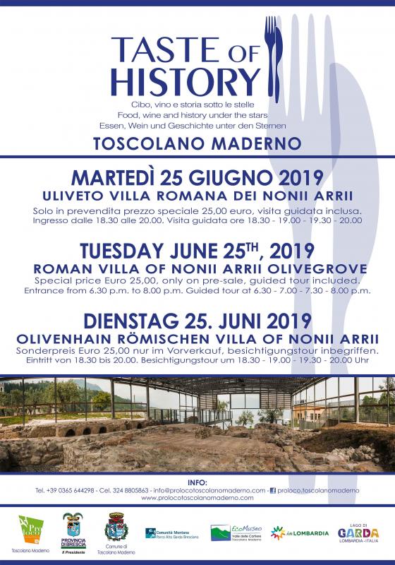Allietati dall’animazione proposta da figuranti in costume e da un accompagnamento musicale, potrete assaporare i piatti tipici del tempo, in abbinamento ai rinomati vini locali e naturalmente il delicato olio extra vergine del territorio, concludendo con un gustoso dessert, caffè e digestivo. Visita guidata alla Villa Romana inclusa.