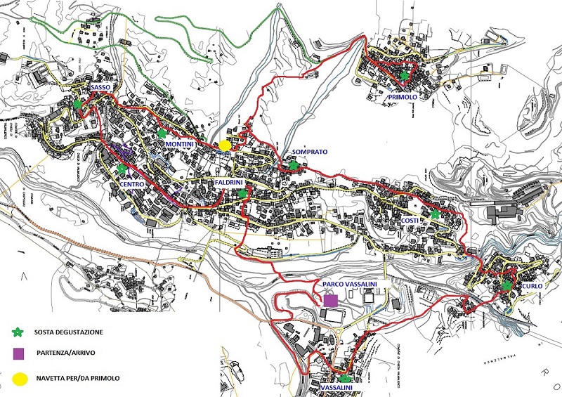 La prenotazione dà diritto a consumazione in ogni contrada, zaino, tasca con bicchiere e posate, cartina con itinerario e opuscolo “Sentiero delle contrade”.
