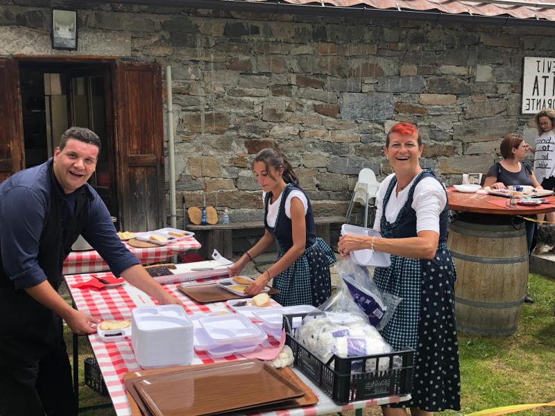 piatti caldi e freddi con pastasciutta montanara (per i bambini anche pasta al pomodoro o ragù), assaggi di prodotti tipici e locali caldi e freddi, dolci - strudel e fantasia - acqua compresa / vino e bibite non comprese.