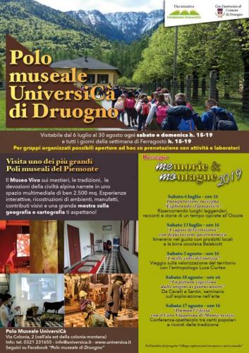 Il Polo museale rimarrà aperto fino al 30 agosto il sabato e la domenica dalle 15 alle 19, con ultimo ingresso alle 18 con due percorsi multimediali di grande impatto: il Museo Vivo sulla civiltà alpina alla scoperta delle tradizioni, dell’arte, della civiltà del legno, dei trasporti (come la Ferrovia Vigezzina) e della pastorizia e il percorso “Geo d’Etica” su geografia e cartografia e realizzato in collaborazione con l’Archivio Storico dell’Istituto Geografico De Agostini di Novara.