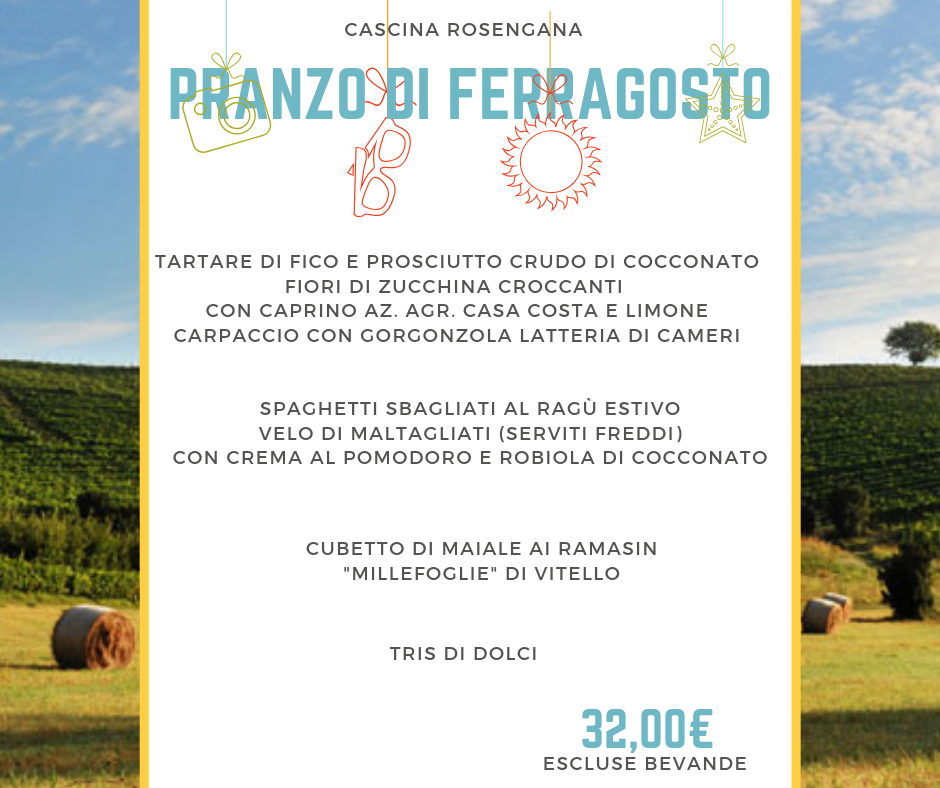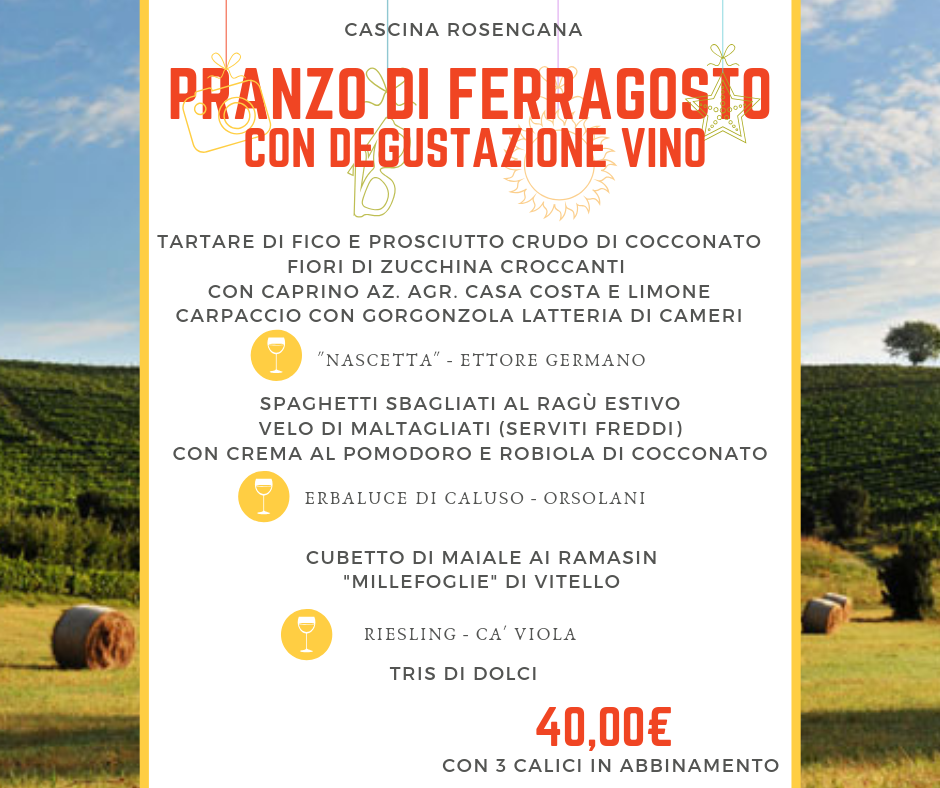 Pranzo di Ferragosto a Cascina Rosengana in due versioni: