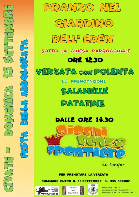 PRANZO IN COMPAGNIA nel BELLISSIMO GIARDINO DELL'EDEN A CIVATE.