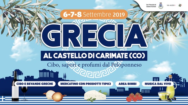 GRECIA AL CASTELLO DI CARIMATE è un evento a INGRESSO GRATUITO di Italia on The Road - Cibo Da Strada, con il Patrocinio del Comune di Carimate, powered by Via Audio.