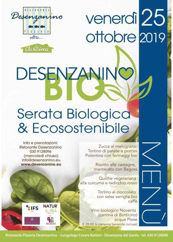 Venerdì 25 ottobre alle 20, il Ristorante Desenzanino di Desenzano del Garda – gestito dalla Cooperativa sociale La Cascina – proporrà una “Serata Biologica & Ecosostenibile” con la partecipazione di alcuni partner d’eccezione, fornitori del locale.