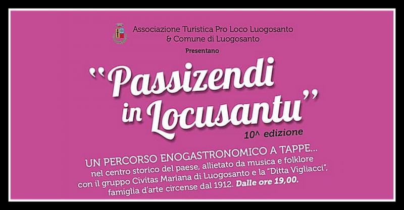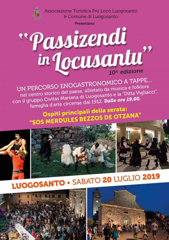 Giunge alla 10a Edizione la oramai consolidata manifestazione “Passizendi in Locusantu”, aprendo il primo di una ricca serie di eventi estivi organizzati dalla Pro Loco con il patrocinio del Comune di Luogosanto e la collaborazione di varie Associazioni fra le quali il Comitato Festa Manna - Fidali Classe 1975.
