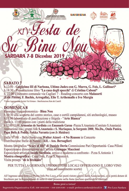 Anche quest'anno la Pro Loco, in collaborazione con l'Amm.ne Comunale – R.A.S. Associazioni e produttori locali di vino, propongono quest'attesissima FESTA. Musica-concerti-reading, canti, ballus sardus, danza, maiedus, majorettes, artigiani, mostre, artisti, vino (e il vitigno autoctono di Sardara “il Semidano") e buon cibo locale con i piatti della nostra tradizione distribuito dalle Assoc. Sardara. Tour del nostro bellissimo ed invidiato centro storico, con i suoi siti archeologici, il suo museo, mostre, laboratori… Sardara è capitale termale della Sardegna, "Borgo Autentico" e con marchio di qualità "Herity"). Ritorna il Tour dei Presepi de Is Bixinaus. Questa manifestazione ha anche lo scopo di stimolare la produzione del buon vino soprattutto tra i nostri produttori ed educare alla cultura del buon bere. Lo scopo è anche quello di stimolare la produzione dei prodotti sia del comparto agroalimentare che artigianale che trovano spazio nella festa.