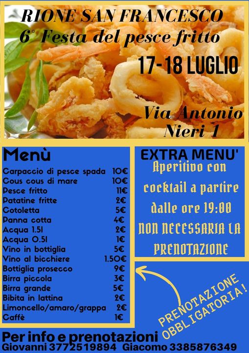 La Festa del Pesce Fritto di Pescia (PT) si terra nei giorni 17 e 18 Luglio 2021, nel Rione San Francesco in Via Antonio Nieri 1.