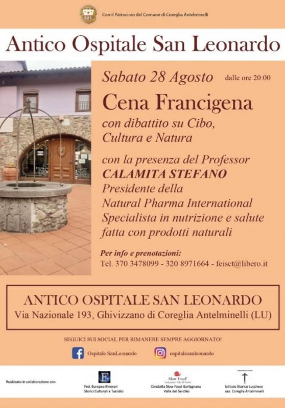 Cena Francigena a base di prodotti tipici della Garfagnana, accompagnata dalla presenza del Professor Calmita Stefano, nel suggestivo luogo dell' Antico Ospitale San Leonardo