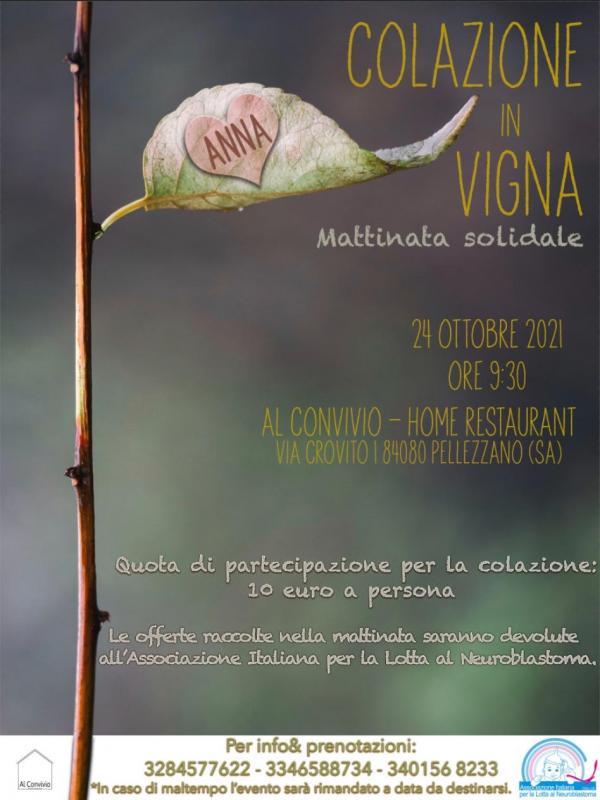 Dal dolore e dalla disperazione può nascere la speranza, per regalare un sorriso e un futuro ai bambini, attraverso la ricerca scientifica. Tra solidarietà, amicizia, natura e prodotti bio a chilometro zero, per un evento immersivo in un ambiente salubre, lontano dal centro cittadino, a stretto contatto con gli animali, per riappropriarsi del legame con l’habitat naturale e per riflettere sulla necessità di sostenere la ricerca scientifica. Ancora una volta in campo Francesca Pisano, Annarosa Pisano, Rita Caruso e Francesca Landi, in ricordo della loro amica Anna Gallo, a cui è dedicata la “Colazione in Vigna” all’insegna della condivisione, dell’allegria e della solidarietà, finalizzata alla raccolta fondi a favore dell'Associazione Italiana per la Lotta al Neuroblastoma.