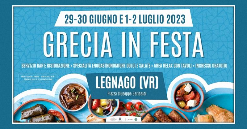 L'Estate è arrivata e continuano gli appuntamenti enogastronomici all'aperto nel cuore di Legnago (VR): da Giovedì 29 Giugno a Domenica 02 Luglio 2023 in scena la 32a edizione di "Grecia in Festa", il format itinerante dedicato alla Cucina del Peloponneso, per quattro gustose giornate da non perdere nella centrale Piazza Garibaldi!
