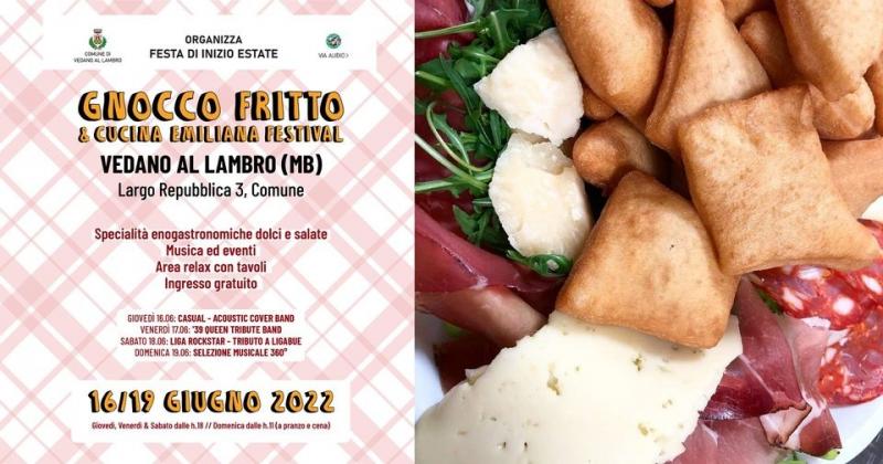 Torna la bella stagione e tornano gli eventi enogastronomici a Vedano al Lambro (MB): il 16-17-18-19 Giugno l'appuntamento è con il "Gnocco Fritto & Cucina Emiliana Festival", la 10° edizione del grande format itinerante dedicato alla cucina emiliano-romagnola, in scena nel centrale Largo Repubblica per un lungo weekend di gusto e divertimento da non perdere!