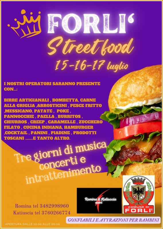 A Forlì in provincia di Forlì-Cesena si svolge nei giorni 15, 16, 17 Luglio 2022 la manifestazione Forlì Street Food.