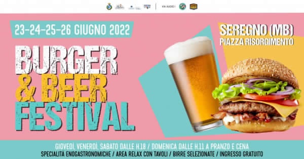 Con il primo weekend di Estate continuano gli eventi a Seregno (MB): il 23-24-25-26 Giugno in scena il 1° Burger & Beer Festival: quattro giorni di hamburgeria e birre selezionate a cielo aperto nella centrale Piazza Risorgimento!