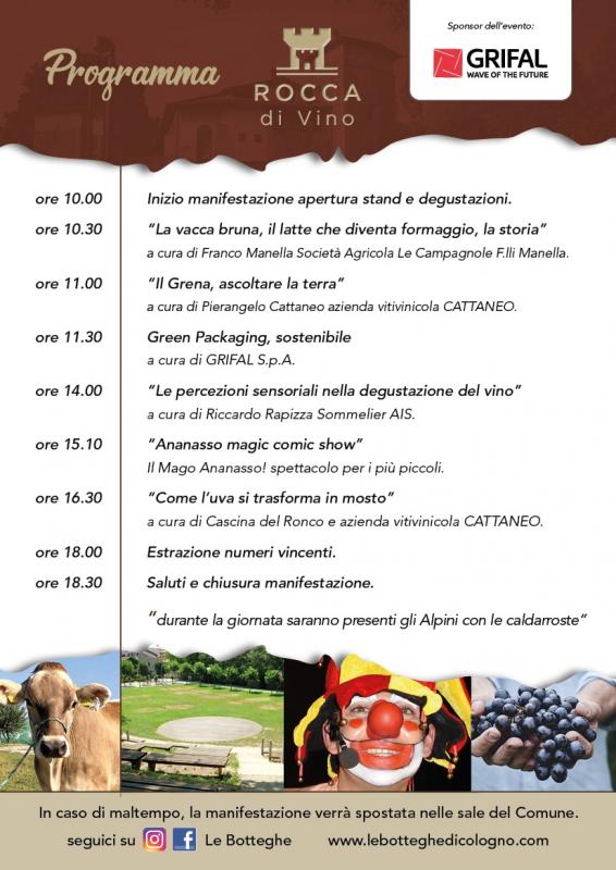 Oppure vi invitiamo a seguire le pagine social dell’associazione “Le Botteghe” o partecipare all’evento Facebook “Rocca di Vino”.