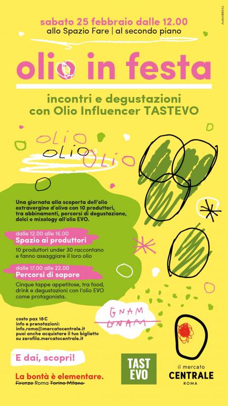 Sabato 25 febbraio si terrà la prima edizione di Olio in Festa, un evento dedicato all’olio EVO in collaborazione con TASTEVO olio influencer.