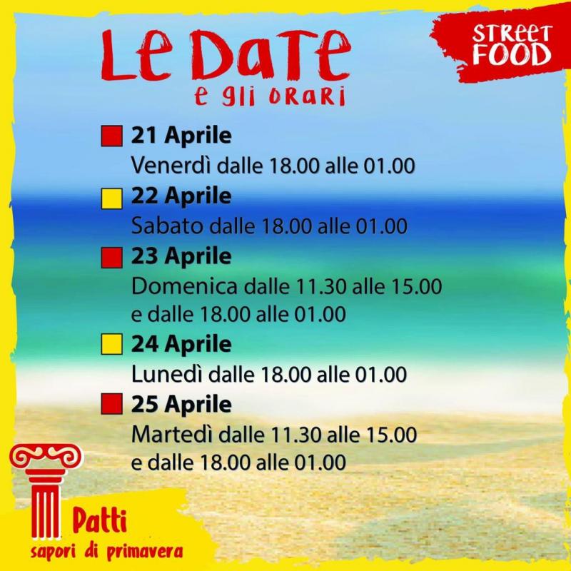 Condivisione, allegria, territorio e tante specialità da gustare. Sono gli ingredienti del ‘Patti Street Food’ – Sapori di primavera, al via venerdì 21 aprile, taglio del nastro alle ore 18, nel village realizzato in via Capitano Filippo Zuccarello a Patti Marina.