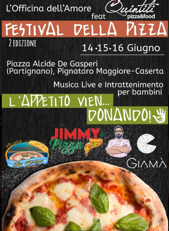 A Pignataro Maggiore in provincia di Caserta si svolge nei giorni 13, 14, 15 Giugno 2025 il Festival della Pizza.