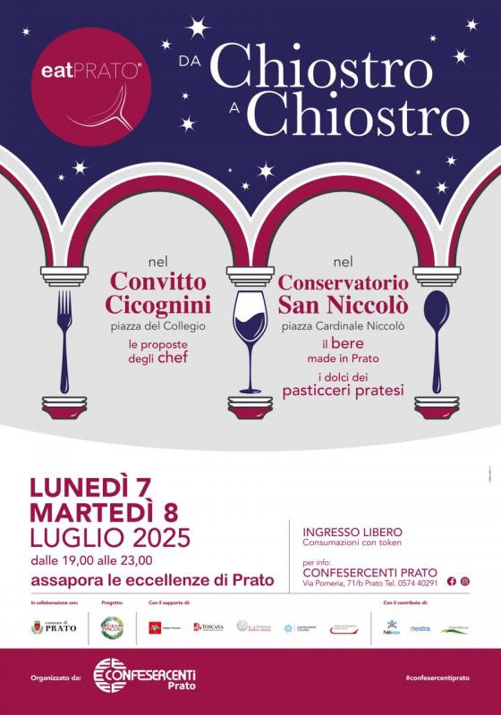 L'evento si terrà Lunedì 7 e Martedì 8 Luglio 2025 presso il Convitto Cicognini e il Conservatorio San Niccolò, organizzato da Confesercenti Prato in collaborazione con il Comune di Prato all'interno del progetto EatPrato e Vetrina Toscana, con il supporto di Regione Toscana, Camera di Commercio Pistoia-Prato, Toscana Promozione Turistica, Unioncamere e Fondazione sistema toscana.