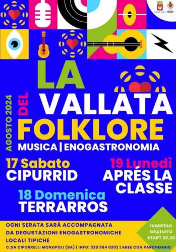 L’associazione “ Amici di Ciporrelli” organizza a Monopoli in contrada Ciporrelli “la 16 edizione “ La Vallata del folklore” il 23 Agosto con una splendida “SAGRA DELLA FRITELLA FARCITA” ricca di specialità nostrane e degustazione tipiche ricercate dalle nostre nonne. Tutto accompagnato da buon vino e birra.