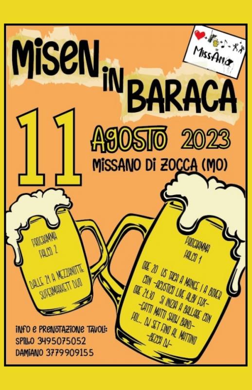 A Missano, frazione del Comune di Zocca in provincia di Modena si svolge nella giornata di Venerdì 11 Agosto 2023 la 19a Edizione della Festa della Birra "Misen in Baraca".