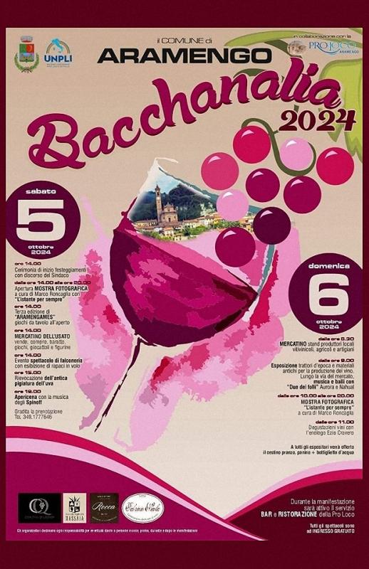 Ad Aramengo in provincia di Asti si svolge nei giorni 05 e 06 Ottobre 2024 la Festa dell'Uva e del Vino "Bacchanalia 2024".