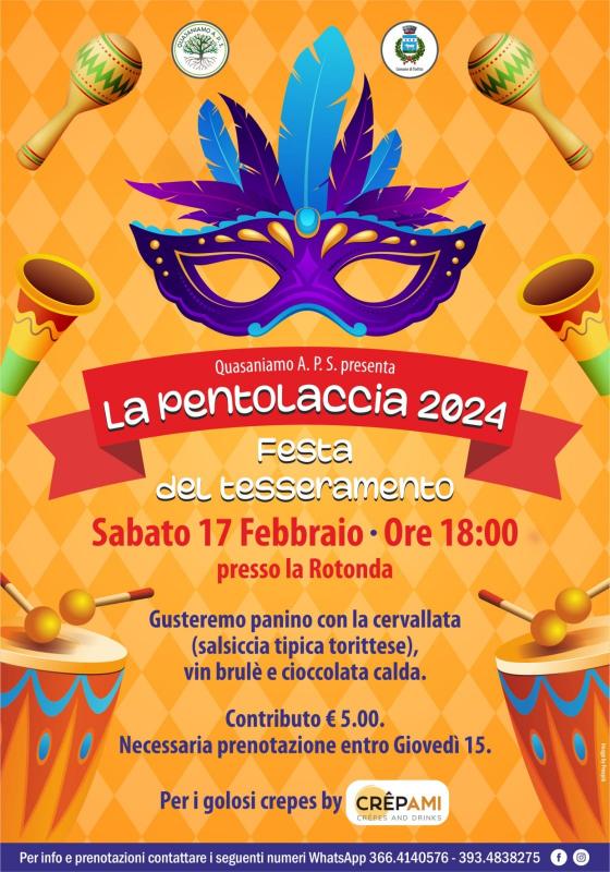 La festa inizierà alle 18.00 con "La Pentolaccia", un momento conviviale e giocoso dedicato ai più piccoli che, mascherati o meno, potranno mettersi alla prova nella sua rottura, un'impresa eroica che promette dolci sorprese e divertimento assicurato!