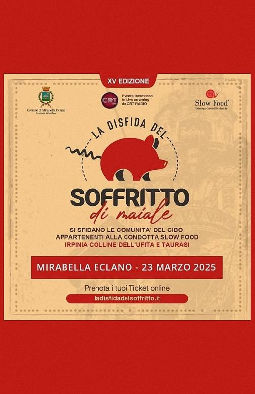 Vi aspettiamo Domenica 23 Marzo 2025 a Mirabella Eclano per un evento che farà esplodere il gusto! La sfida del soffritto è più accesa che mai e questa attesa l'ha resa ancora più emozionante!