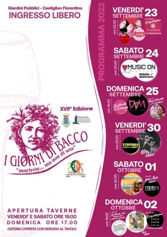 Veniteci a trovare nei giorni 23-24-25 e 30 Settembre e 1-2 Ottobre 2022 a Castiglion Fiorentino; I GIORNI DI BACCO "Morirete ma non di sete".