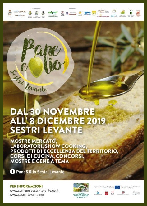 Pane e Olio si conferma così anche per quest’anno una manifestazione con un ricco e vasto programma che per la prima volta si allarga con piacere ai comuni limitrofi di Chiavari, Lavagna e Casarza Ligure.