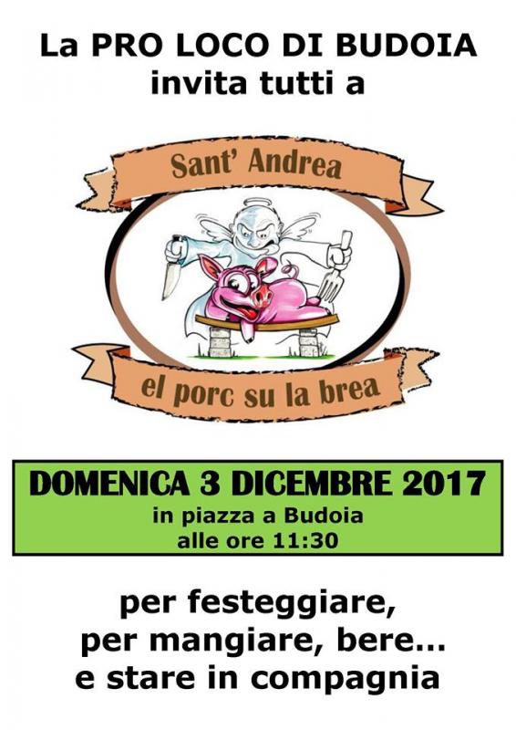 A Budoia da alcuni anni riscontra un successo anche superiore alle iniziali aspettative la tradizionale festa “Sant’Andrea, el porc su la brea”, organizzata dalla Pro Loco nella domenica precedente la ricorrenza del Patrono del paese, il 30 novembre.