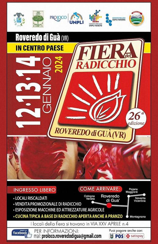 Venerdì 12, Sabato 13 e Domenica 14 Gennaio 2024 torna nel centro di Roveredo di Guà (VR) l'appuntamento enogastronomico con la Fiera del Radiocchio Rosso di Verona, che quest'anno giunge alla 26a edizione.