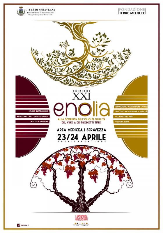 A Seravezza torna “Enolia” sabato 23 e domenica 24 aprile 2022, evento che per un fine settimana mette al centro la qualità dei migliori oli extra vergine d'oliva e i prodotti che si troveranno al Villaggio del Vino, dedicato a grandi vini di vignaioli indipendenti.