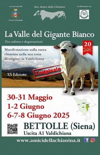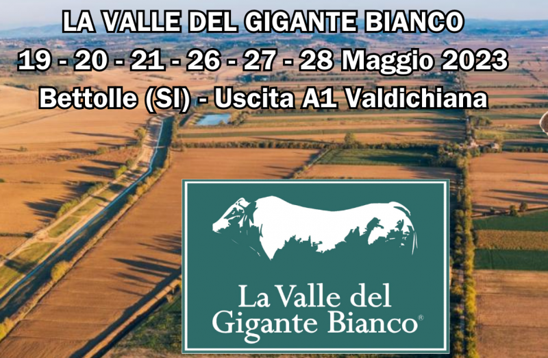L'Associazione Amici della Chianina è lieta di annunciarvi che ritorna la manifestazione de LA VALLE DEL GIGANTE BIANCO in collaborazione con il Consorzio di Tutela del Vitellone Bianco dell'Appennino Centrale e il patrocino del Comune di Sinalunga.