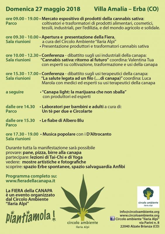 La finalità che il Circolo Ambiente “Ilaria Alpi” intende perseguire con la “Fiera della Canapa” è la promozione della coltivazione e dell’utilizzo/trasformazione della cannabis sativa in Lombardia, tramite il coinvolgimento dei soggetti interessati (agricoltori, imprenditori, ecc.) e la sensibilizzazione della cittadinanza. Il tutto attraverso conferenze, mostre, esposizione di prodotti derivanti dalla trasformazione cannabis sativa. Con la manifestazione si intende inoltre analizzare anche l’importanza della coltivazione della canapa dal punto di vista agricolo e ambientale.