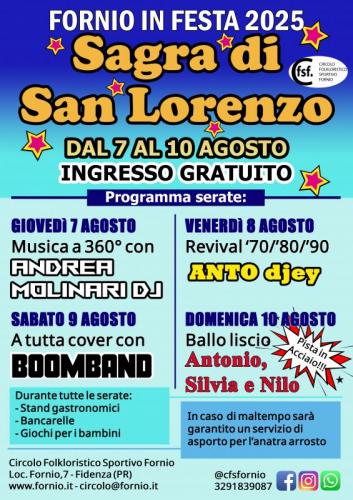 Anche quest'anno il Circolo Folkloristico Sportivo Fornio organizza la tradizionale sagra di S.Lorenzo a Fornio di Fidenza (PR)