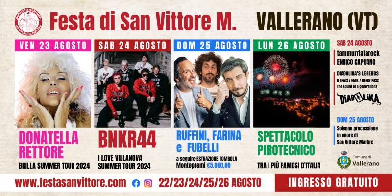 festa in onore di San Vittore Martire a VALLERANO (VT) dal 22 al 26 agosto 2024