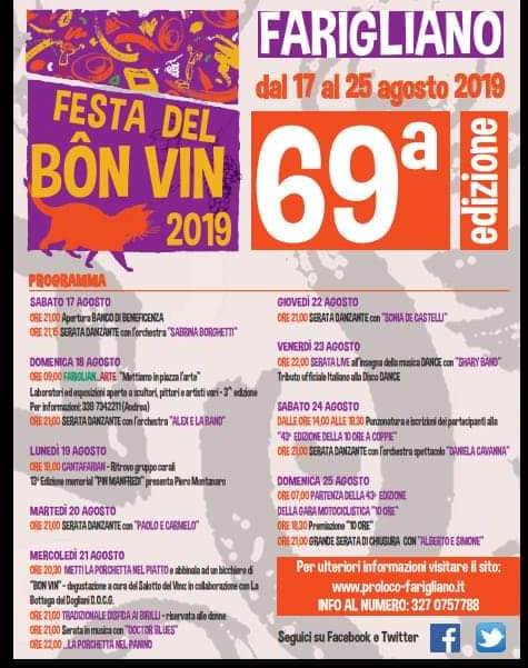 Dal 17 al 25 agosto 2019 a Farigliano in provincia di Cuneo si svolge la Festa del Bon Vin.