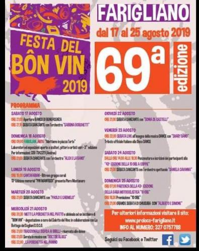 La manifestazione, che si svolge a fine agosto, è nata nel 1951 con l’obiettivo di promuovere il vino Dolcetto prodotto nelle colline fariglianesi. Nell’ambito della Festa del Bôn Vin, si tiene anche la mostra-mercato Salotto del vino, organizzata per dare la possibilità ai produttori vitivinicoli fariglianesi di esporre i loro vini e di farli degustare ai turisti ed agli appassionati.