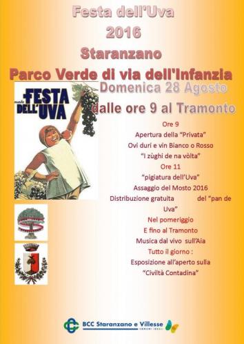 Durante la Sagra de le Raze una giornata dedicata alle tradizioni, domenica 28 Agosto 2016 al Parco Verde di via dell'Infanzia a Staranzano ci sarà la Festa dell'Uva 2016.