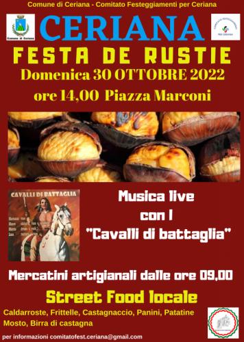 Appuntamento a Ceriana Domenica 29 Ottobre per la "Festa de Rustìe", la Sagra della Castagna, appuntamento che si rinnova ogni anno organizzato dal Comune di Ceriana e dal Comitato Festeggiamenti per Ceriana.