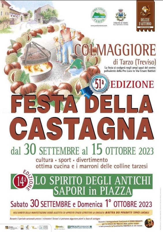La sagra della castagna si svolge a Tarzo normalmente nelle prime tre settimane di ottobre e riveste un ruolo fondamentale nel programma di attività sviluppate dalla Pro Loco. È infatti una delle manifestazioni più ricche in termini di offerta culturale, gastronomica, sportiva e di spettacolo. La manifestazione si apre con un convegno che interessa un prodotto tipico della zona. A tale proposito, nelle tre domeniche di apertura della festa, viene allestito anche uno stand con spazi riservati ai produttori locali per esporre e commercializzare i propri prodotti.