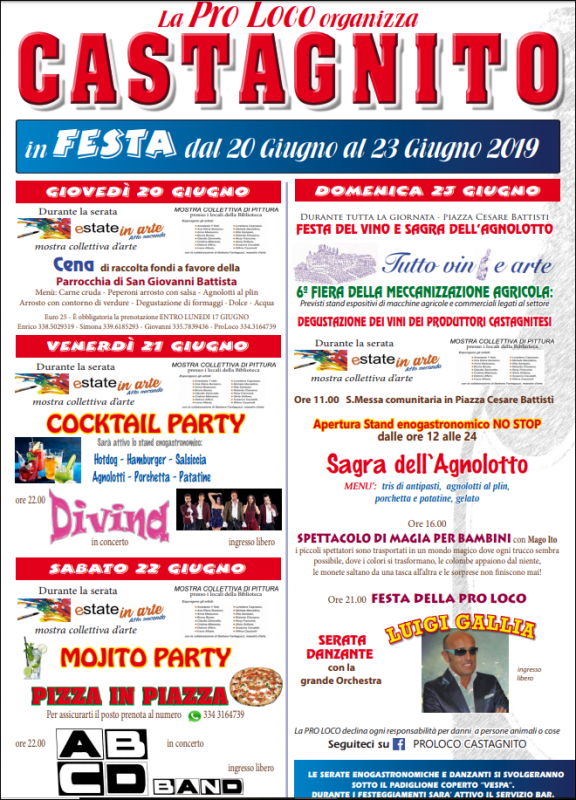 A Castagnito in provincia di Cuneo si svolge nei giorni dal 20 al 23 Giugno 2019 la manifestazione Castagnito in Festa.
