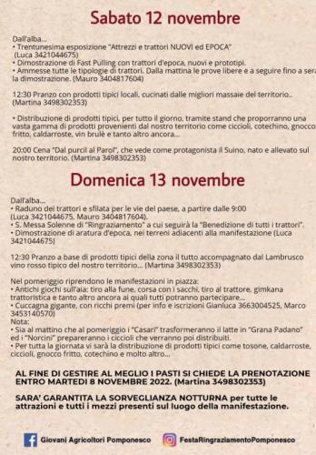 La 32a edizione della Festa del Ringraziamento a Pomponesco si svolge Sabato 11 e Domenica 12 Novembre 2023.