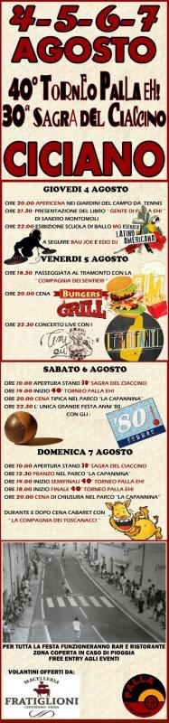 40^ Torneo palla EH! e 30^ Sagra del Ciaccino a Ciciano (SI) dal 4 al 7 agosto 2016.