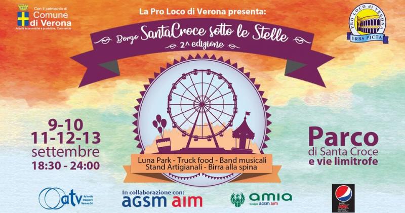 Dal 9 al 13 settembre si terrà "Santa Croce sotto le stelle" organizzata dalla Pro Loco di Verona con tutte le giostre di sempre, nel rispetto di tutte le precauzioni e le norme vigenti anticovid.