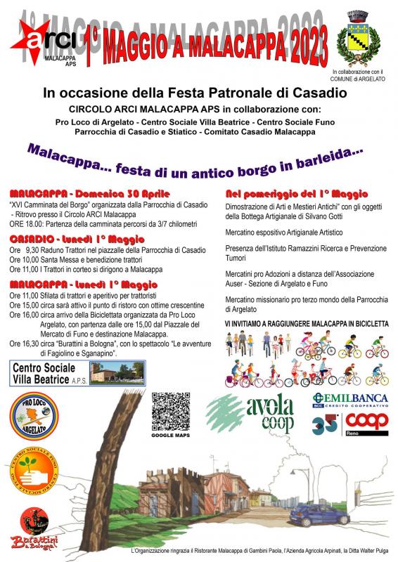 Organizzata da Proloco di Argelato con ritrovo alle 14:30 nella Piazza del mercato settimanale di Funo in Via Nuova. Per tutti i partecipanti che ritireranno il ticket a offerta libera verrà dato un buono valido per una crescentina all'arrivo a Malacappa! L'intero ricavato delle offerte verrà devoluto a favore dell'Istituto Ramazzini!
