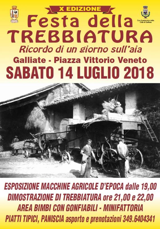 Sabato 14 luglio torna per la decima edizione la Festa della trebbiatura Galliate in Piazza Vittorio Veneto.